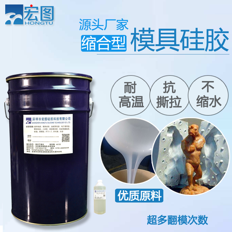 縮合型模具硅膠俗稱工業級硅膠,其環保性不如加成型模具硅膠,是一款適合工業模具制作的液體硅膠原料。AB雙組份按100:2~2.5配比,屬于室溫硫化成型硅橡膠。