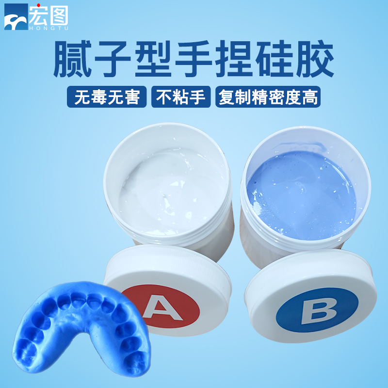 手捏硅膠是雙組份室溫固化硅橡膠,固化前A,B組分為膩?zhàn)有停ㄜ浤酄睿旌虾罂煽焖俟袒袒缶哂幸欢ǖ膹椥院陀捕龋⑶揖哂袠O低的成型收縮性和存儲(chǔ)穩(wěn)定性。利用其方便的可塑性可便捷地復(fù)制出所要空間的形態(tài),得到物體一定空間的仿制體,進(jìn)而可以測(cè)量所需部位的尺寸。對(duì)于那些難以用工具直接測(cè)量的所需部位,利用該材料能方便的完成測(cè)量。